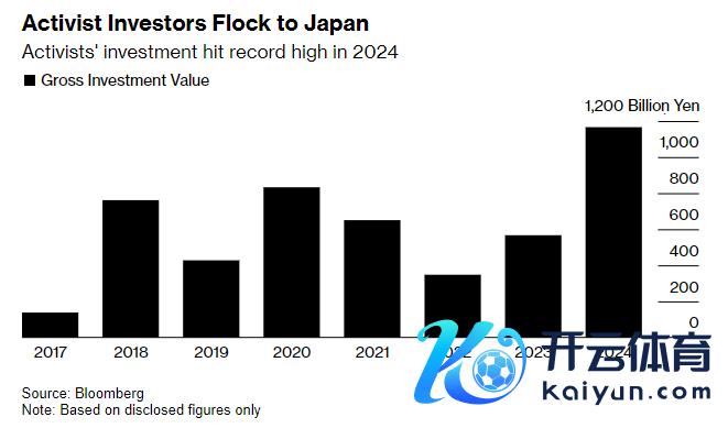 激进投资者对日本钞票的千里醉还是达到了创记录的水平。他们的影响力亦然如斯。 凭证汇编数据,这些基金本年至少购买了价值1万亿日元(66亿好意思元)的日本股票。凭证对数据的分析,即使探究到他们退出的来往,他们的净买入额也可能向上5000亿日元。 这使得它们成为该国股票的最大买家,仅次于进行股票回购的公司。 在包括Elliott Investment Management和Oasis Management Co.在内的番邦基金以及Yoshiaki Murakami等日本特定投资者的指导下,激进投资者