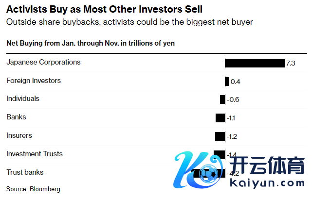 在包括Elliott Investment Management和Oasis Management Co.在内的番邦基金以及Yoshiaki Murakami等日本特定投资者的指导下,激进投资者已入股至少146家公司。他们到手地条款处理房地产、蜕变政策和回购股票。比拟之下,日本的银行、保障公司、信赖银行和散户投资者本年齐是净卖家。