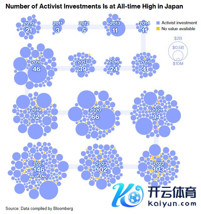 大多数商场参与者瞻望,来岁的激动维权行径将相似狂热,以致更为浓烈。这在一定进度上是因为日本金融厅向企业施压,条款它们罢手交叉捏股。交叉捏股已颠倒十年的历史,为经管层抵挡外部投资者提供了可靠的因循。