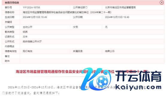 中国经济网北京12月18日讯北京市海淀区东谈主民政府网站13日公布了海淀区阛阓监督惩处局通报存在食物安全问题被查处的餐饮单元(2024年第二十一期)。2024年11月25日-2024年12月10日,海淀区阛阓监督惩处局抓续开展餐饮食物安全大查验使命,对海淀区42家餐饮门店进行了照章查处。