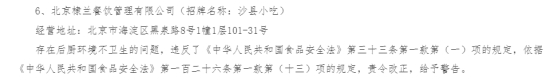 查处情况潜入,北京棣兰餐饮惩处有限公司(牌堪称呼:沙县小吃)存在后厨环境不卫生的问题,违抗了《中华东谈主民共和国食物安全法》第三十三条第一款第(一)项的规律,依据《中华东谈主民共和国食物安全法》第一百二十六条第一款第(十三)项的规律,责令改正,予以申饬。