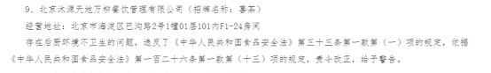 北京沐源天下万柳餐饮惩处有限公司(牌堪称呼:喜茶)存在后厨环境不卫生的问题,违抗了《中华东谈主民共和国食物安全法》第三十三条第一款第(一)项的规律,依据《中华东谈主民共和国食物安全法》第一百二十六条第一款第(十三)项的规律,责令改正,予以申饬。