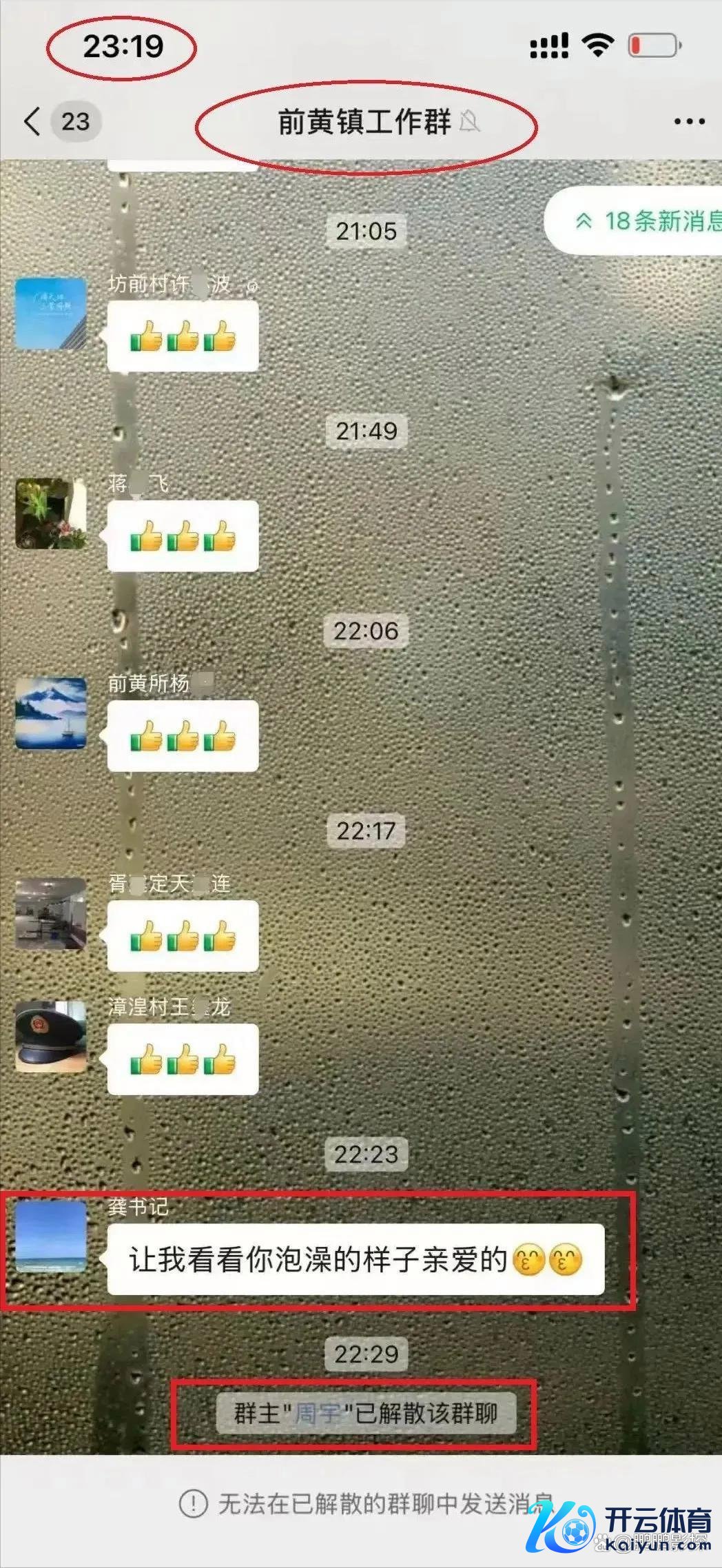 近日云开体育,常州前黄镇龚通知爱看别东谈主泡澡的新闻上了热搜。 缘由是12月30日,在前黄镇的职责群里,别东谈主王人在接龙发竖大拇指的颜料,龚通知却发了一条:“让我望望你泡澡的神气亲爱的。” 随着这句话一谈发的,还有两个亲嘴的颜料,显得终点的恍惚。 这种情话淌若原本是要发给我方的内助,后果误发到职责群里,其实也没什么,浑家恩爱嘛,龚通知讲解注解一下就行了,而且各人也会明白的,何况顾惜龚通知两口子的心绪。 可问题是龚通知这句恍惚的话似乎不是发给我方内助的。 原理有二: 1、 发完这句话后因为超时