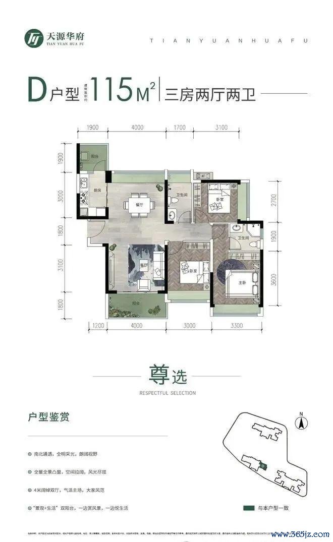 面积:93㎡2房113-115㎡3房163㎡-193㎡4房