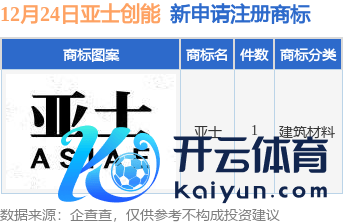本站音信,把柄企查查数据显现开云体育(中国)官方网站,近日亚士创能科技(上海)股份有限公司新提交“亚士”商标注册苦求。商标苦求深信如下:
