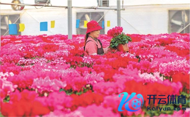 近日,青岛市即墨区灵山街谈百亿绿洲花草陶冶基地智能化温室大棚中,花农在管护、包装花草,发运外售。(通信员 张进刚报谈)