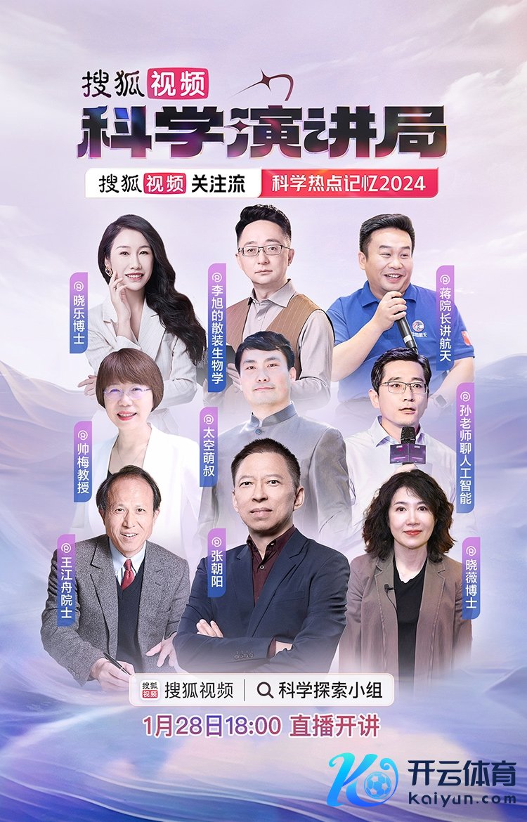 搜狐视频科学演讲局将在1月28日新春佳节之际相等上线,搜狐首创东说念主、董事局主席兼首席实行官、物理学博士张向阳与搜狐视频讲理流东说念主气科学播主们皆聚一堂,指导寰宇清点一年的科学热门驰念。