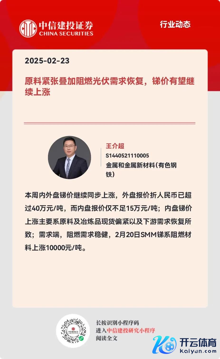 本订阅号(微信号:CSC筹备金属和金属新材料团队)为中信建投证券股份有限公司(下称“中信建投”)筹备发展部中信建投筹备金属和金属新材料筹备团队运营的独一订阅号。本订阅号所载践诺仅面向恰当《证券期货投资者恰当性解决办法》执法的机构类专科投资者。中信建投不因任何干注本订阅号或接收、阅读本订阅号践诺的行动而将订阅东谈主视为中信建投的客户。