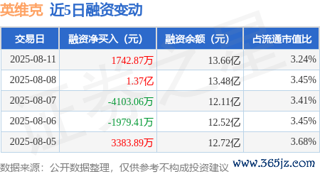 本站音讯开云体育,8月11日,英维克(002837)融资买入6.18亿元,融资偿还6.01亿元,融资净买入1742.87万元,融资余额13.66亿元,近20个往将来中有15个往将来出现融资净买入。